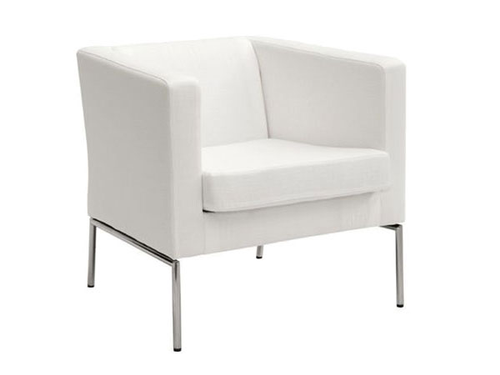 Poltroncina elegante monoposto in ecopelle con piedini in acciaio cromato. Le protezioni in gomma proteggono pavimento dalle rigature.
